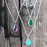 A dainty sterling silver link chain is exquisitely complimented by a delicate drop of alluring Turquoise encased in silver. A simply gorgeous handmade silver necklace. Please note that due to each piece being individually handmade, the Turquoise stone can sometimes be slightly different than...- £42.00