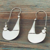 Light hammered sterling silver curves out from the ear and gracefully widens creating an unusual and alluring pair of handmade hoop earrings. Hammered curve is 3mm wide at start increasing to 16mm wide at the end of earring. Diameter of hoop is 30mm.- £43.00