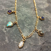A spectacular piece of jewellery featuring a gloriously blue Amazonite stone centerpiece, framed by hand-textured brass that evokes the raw beauty of ancient artifacts. The juxtaposition of textured metal and smooth geometry ensures this piece will capture every eye. Finished on a gold-plated chain, this handmade necklace...- £79.00